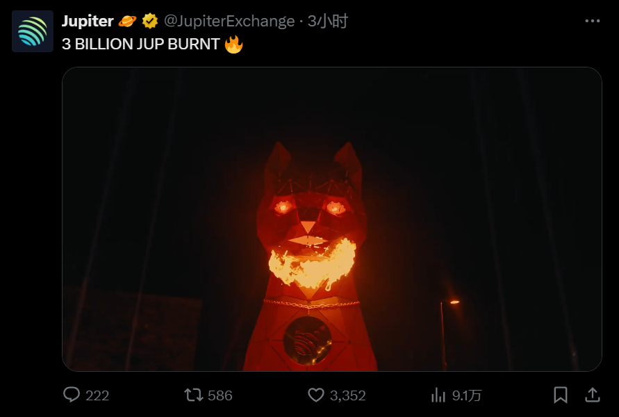 Jupiter 宣布完成 30 亿枚 JUP 销毁,价值约 32 亿美元