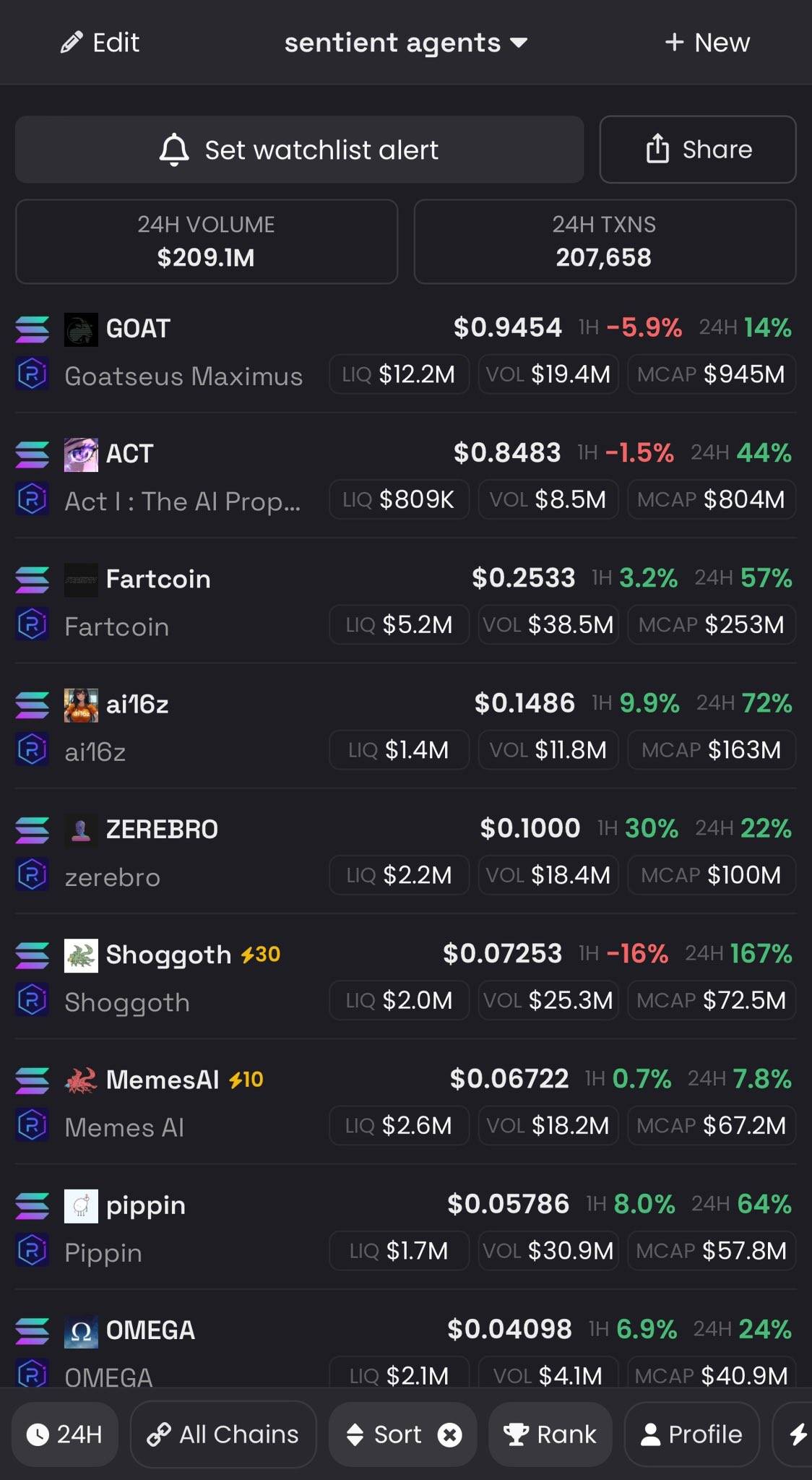 GOAT 市值居首达 9.45 亿美元,24 小时涨幅 14%;