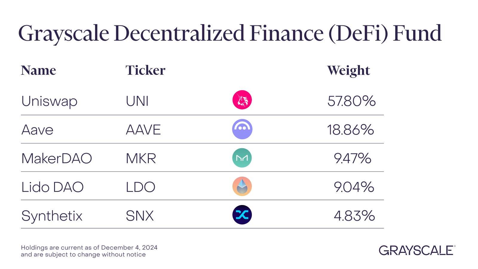 灰度 DeFi 基金最新持仓:UNI 占比 58%,AAVE 占 18.65%