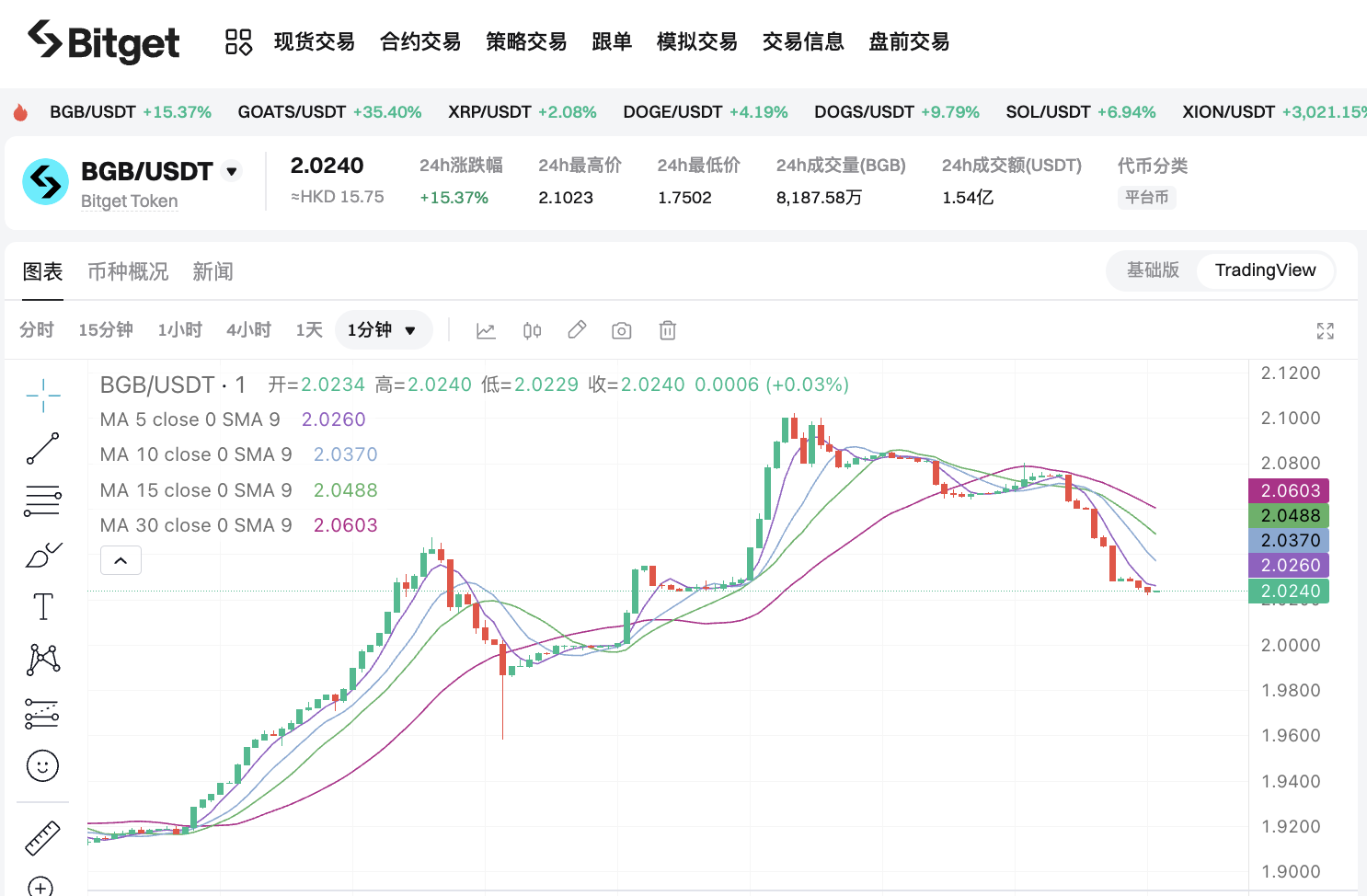 久币网 消息,据 Bitget 行情显示,BGB 突破 2 USDT,再创历史新高,现报价 2.024 USDT,24 小时涨幅为 15.37%。