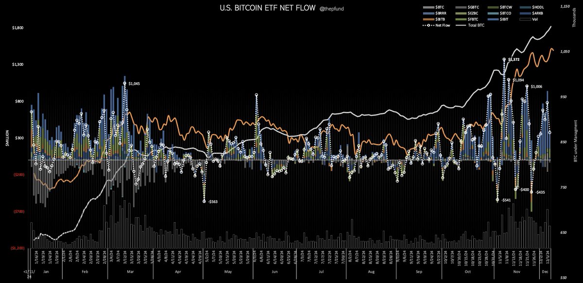 昨日美国现货比特币 ETF 净流入 3.73 亿美元